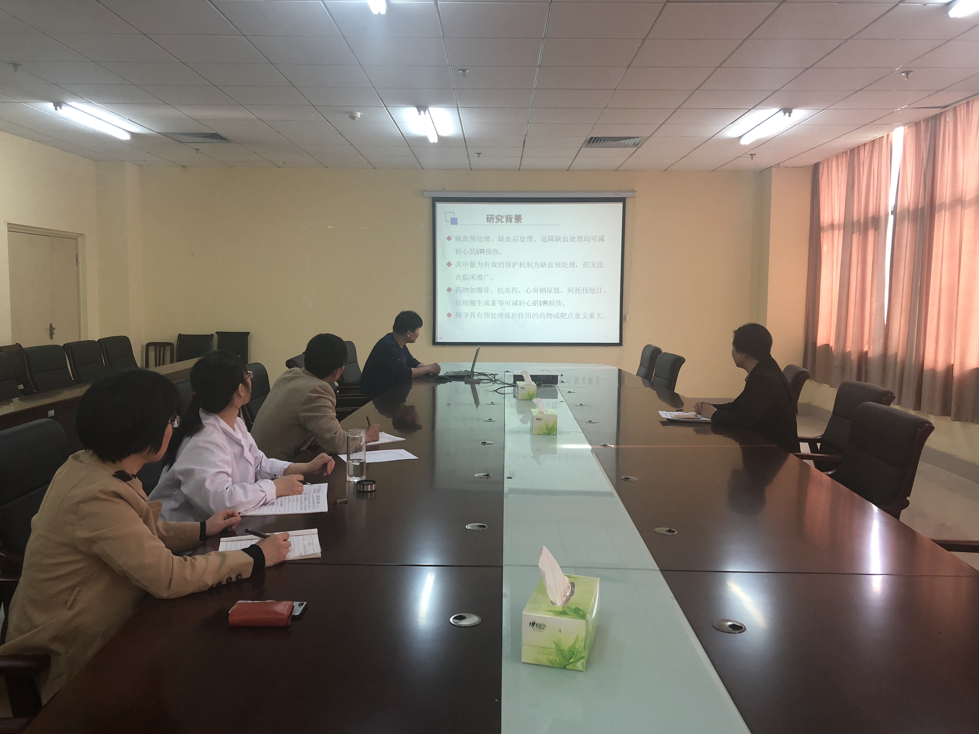 王友博士首先介绍了钙网蛋白预处理在整体水平可有效减轻心肌和微血管内皮细胞I/R损伤,随后介绍了在离体培养的微血管内皮细胞低氧/复氧损伤模型上,钙网蛋白预处理通过上调mTOR磷酸化水平、下调Beclin1水平,抑制内皮细胞过度自噬,减轻低氧/复氧所致内皮细胞损伤,达到心肌保护作用的分子机制。与会教师就感兴趣的问题与王友博士进行了交流探讨,现场互动频繁。