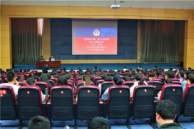 4月16日下午,基础医学院邀请济宁市打击治理电信网络新型违法犯罪中心张正、李世强、陈雷刚和北湖区公安局曹静一行,举办“防网络诈骗,创平安校园”主题宣讲教育活动。活动由基础医学院党委书记郭子林主持。