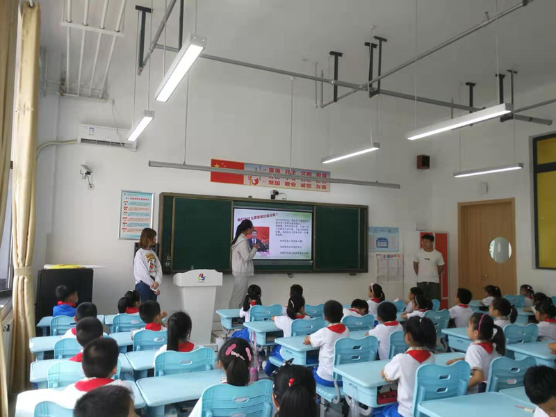 本次公益课旨在贯彻落实习近平总书记对垃圾分类工作的重要指示,培养孩子们从小养成一个垃圾分类的好习惯。团委书记杨绮琛用生动幽默的语言从垃圾的危害、垃圾的正确分类等几个方面进行了讲解,之后梁亚博和杨晨分别解答了学生们提出的问题。