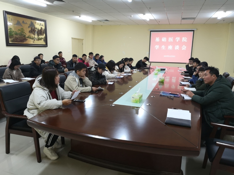 12月5日晚,基础医学院召开2018级、2019级学生代表座谈会。基础医学院教学管理人员、相关教研室主任、学生代表、学生代表参会。