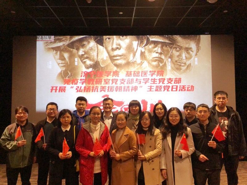 时值中国人民志愿军抗美援朝出国作战70周年纪念日之际,为认真学习和领会习近平总书记在纪念中国人民志愿军抗美援朝出国作战70周年大会上的重要讲话精神,传承和弘扬抗美援朝伟大精神,加强党员干部爱国主义教育,2020年11月5日下午,基础医学院免疫学教研室党支部与学生党支部与共同开展了“弘扬抗美援朝精神”主题党日活动,全体师生党员观看影片《金刚川》。