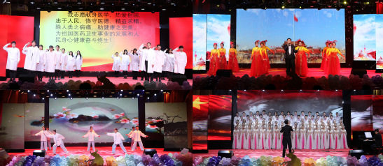 晚会在青春动感的开场歌舞《沧海一声笑》中拉开帷幕。《向光亮那方》的深情朗诵,老师们用最美的赞美诗,抒发对祖国的热爱之情;器乐合奏《湖畔追月的叮当》既有小桥流水般地涤荡心灵,又有舒缓温煦的情感体验,让人如沐春风;民舞《映山红》用美轮美奂的表演表达了对革命先烈的深切缅怀,婀娜多姿的民舞《心有翎兮》,生动诠释了中国戏曲文化的源远流长和博大精深;歌曲《梦想与执念》用RAP的表演形式展现了济医学子的青春活力;舞台剧《钟南山》、歌曲《你的答案》,回顾了庚子武汉遭疾、众志成城抗敌的曾经,表达了济医学子对共和国英雄的崇高敬意,当在场全体同学自发起立,共同呐喊医学生誓言时,所有人为之动容,将晚会推向高潮;医承天籁合唱团带来的合唱《蜗牛》、《我的祖国》,体现了济医学子为中国梦拼搏奋斗的顽强毅力,晚会在深情的歌声中圆满落幕。