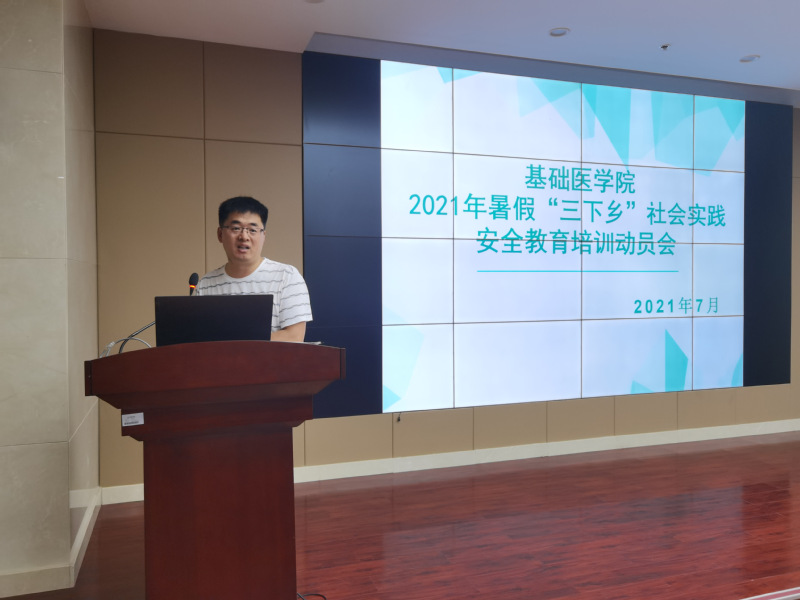2021年7月15日,我院2021年大学生暑期“三下乡”社会实践培训动员大会在基础医学院报告厅举行。18级辅导员宋兴宽老师、19级辅导员郭天老师及2021年暑期“三下乡”团队的全体成员参加了本次大会。