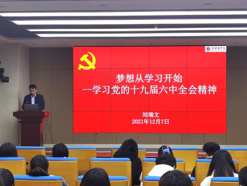为深入学习宣传贯彻党的十九届六中全会精神,12月7日,校团委书记刘瑞文为基础医学院全体学生干部作题为《梦想从学习开始--学习党的十九届六中全会精神》宣讲报告。