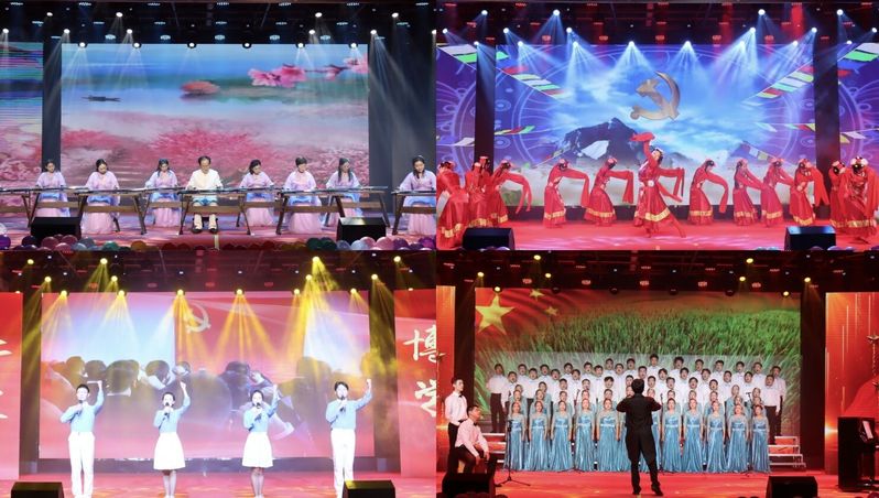 晚会在大气磅礴的开场舞《盛世中华》中拉开帷幕。情景歌剧《绣红旗》《江山》,再现了星火燎原的时代,歌颂了党心系人民、无私奉献的情怀。民舞《春采》演绎了劳动人民对新时代的憧憬和向往,《唱支山歌给党听》礼赞党的百年华诞,歌颂伟大的的祖国。小朋友们带来的歌舞《甘嫫阿妞》以天真无邪的歌声,吟诵了勤劳勇敢的彝族之花。古琴齐奏《良宵引》《关山月》,如深山幽谷之中娓娓道来,弹指间恍如穿越千年。爵士舞《DUN DUN》展现了济医青年学子的无限活力。朗诵《请党放心,强国有我》用振奋人心的呐喊歌颂了激情燃烧的岁月、光荣与梦想的时代,以济医之音,颂爱国华章!医承天籁合唱团带来的合唱《新的天地》《我爱你,中国》,展现了济医学子在新时代实现中华民族伟大复兴的决心和勇气,晚会在深情的歌声中圆满落幕。