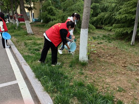 勤劳创造美丽,汗水浇灌绿色。志愿者们本着“奉献、互助、友爱、进步”的宗旨,热情高涨,默契合作,合理分工,不怕脏、不怕累,对道路两旁或草坪上的树木进行了灌溉补水工作。经过大家的不懈努力,校园里的绿地苗木重新焕发生机,为绿化校园,美化环境贡献了自己的一份力量。