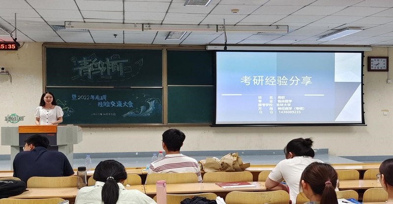 为了营造浓厚学习氛围,发挥榜样示范作用,进一步提高管广大学生的考研热情,6月16日晚,基础医学院在教学楼311教室通过线上线下结合的方式,举办“青鸟计划”暨2022年考研经验交流大会。