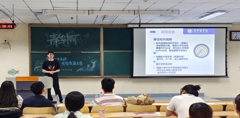 王涵博同学主要就研究生留学申请,包括前期如何准备、申请的具体策略与大家进行了交流与分享;