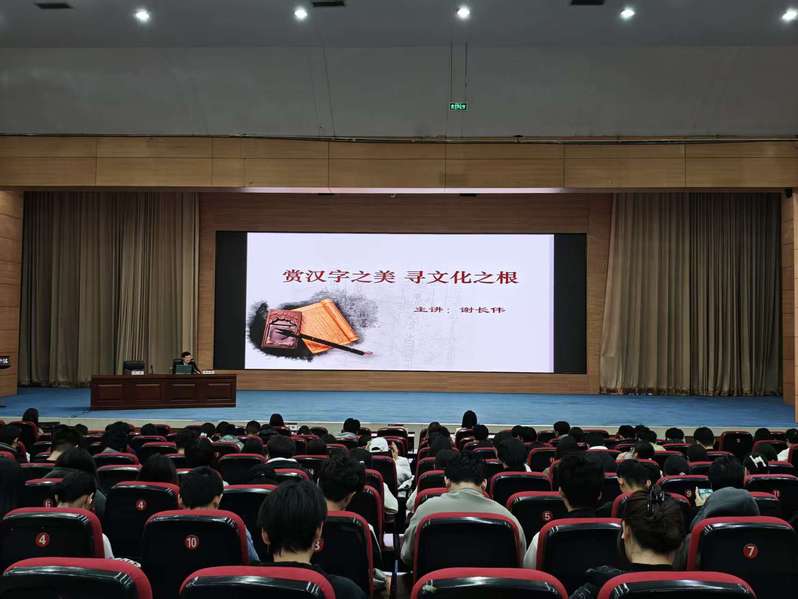 谢长伟教授以《赏汉字之美,寻文化之根》为题,围绕“汉字书体源流浅说”与“书以载道 翰墨千秋”两大主线展开讲授。他通过详实的图文史料,系统梳理了汉字从甲骨文、金文到篆、隶、草、行、楷的演变历程,使听众对汉字的结构之美、演变之妙有了直观的认识。通过解读颜真卿、苏轼等书法大家的传世名作与人生故事,深刻阐述了“字如其人”的文化内涵,引导师生感悟笔墨线条背后蕴含的人格力量与文化理想。整场讲座内容充实、见解深刻,现场气氛热烈。